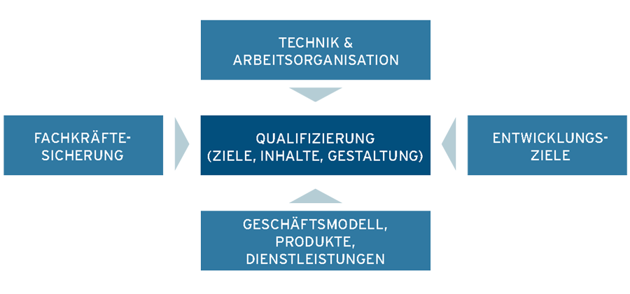 - Fachkräftesicherung durch passgenaue Um- und Weiterschulung ist ein wesentlicher Faktor um wettbewerbsfähig zu bleiben. So können Veränderungen idealerweise frühzeitig von Geschäftsmodellen vorbereitet bzw. begleitet werden.